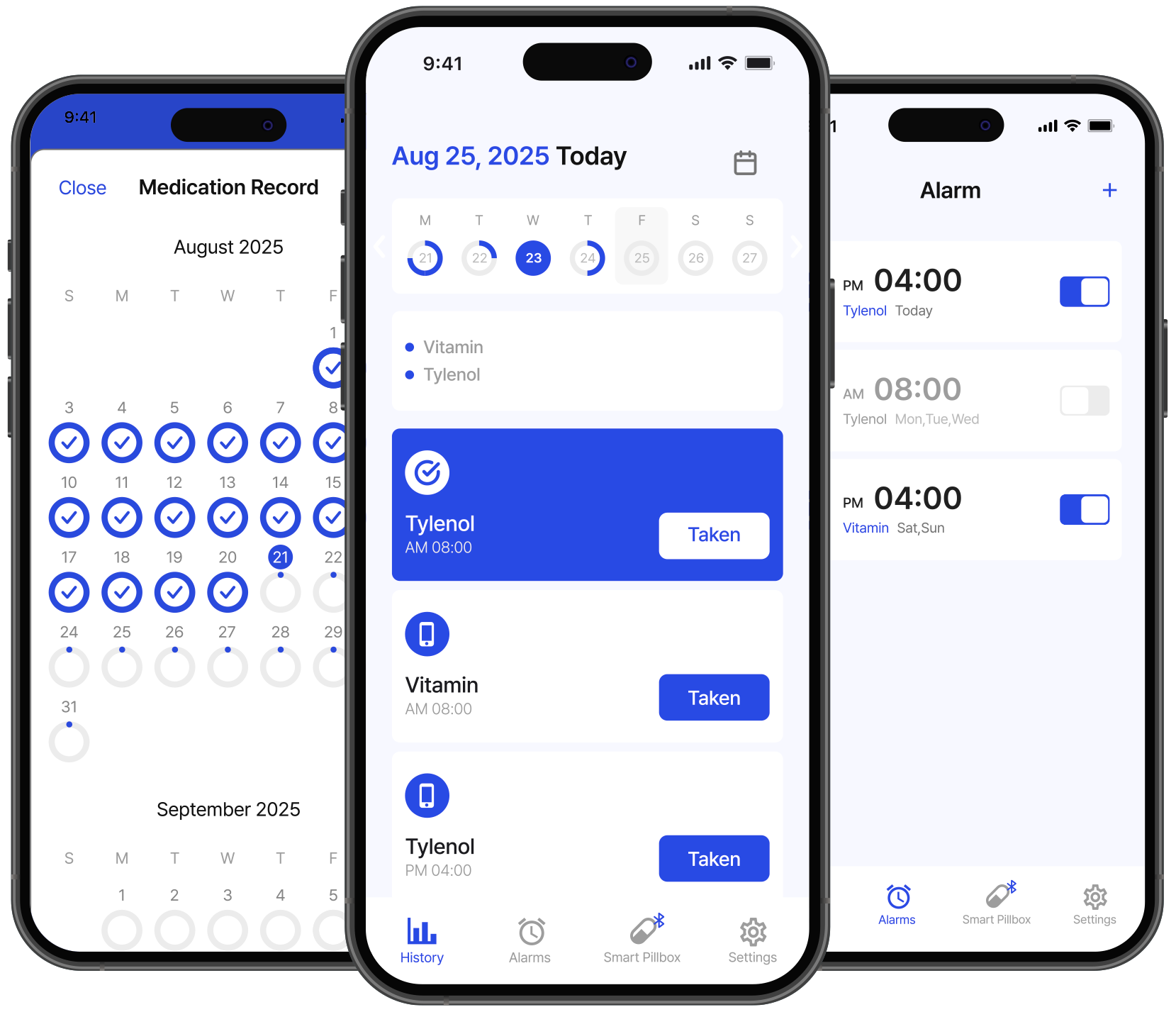 Every feature is designed with one goal: helping you maintain consistent medication routines.